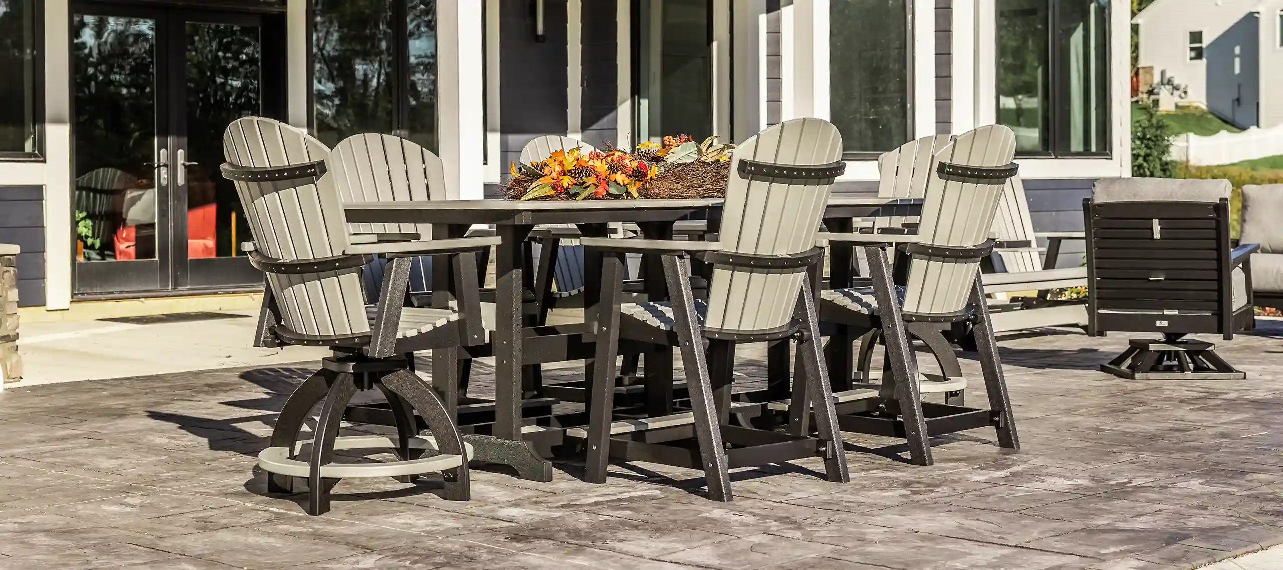 Whether you’re looking for a pair of adirondack chairs for the poolside, a classic porch swing or a full table and chair and/or sofa set for your back deck – we have beautiful, durable poly-vinyl furniture you will love. Our vinyl patio furniture can withstand the harshest elements without the high maintenance required for wood or metal. Selecting from our collections, you can be confident your poly furniture will look like it does the day it’s delivered many years down the road, with very little effort at all.