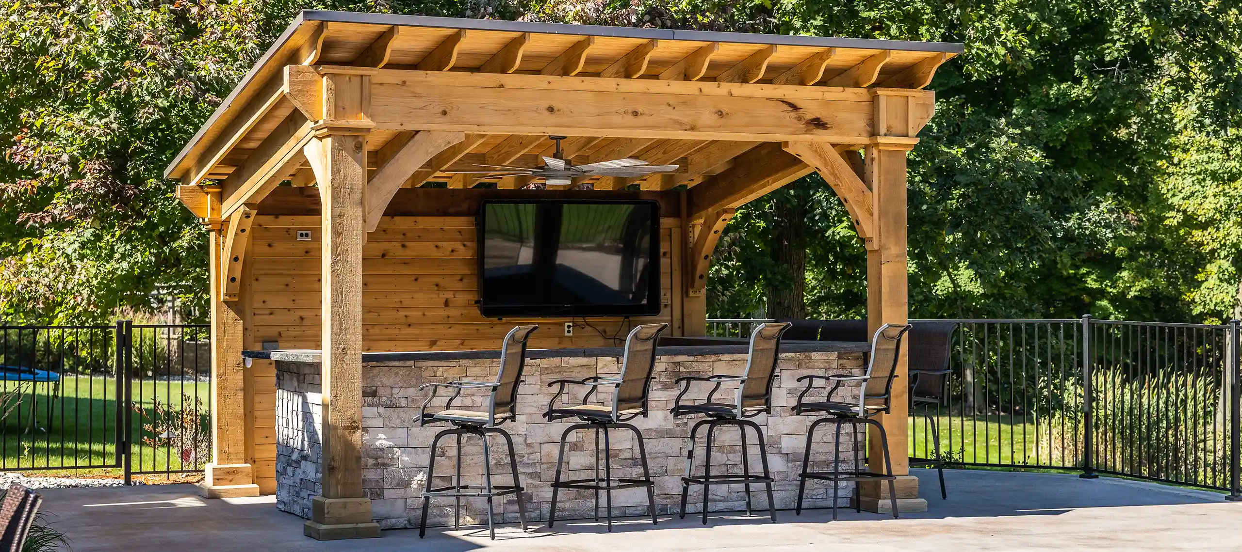 There are many options to choose from when creating your pavilion. We offer vinyl and wood options in many different sizes and styles, so you can craft the statement that works best with your home. See the full variety of options and build your perfect covering today with our 3D builder.