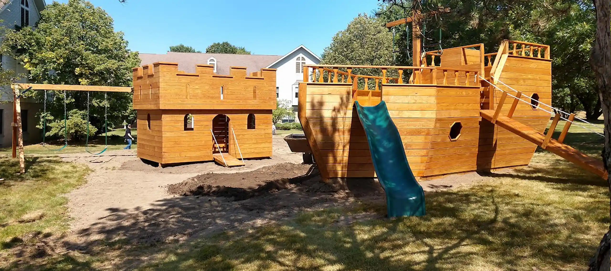 Far from the standard play structures available on the market, our wooden playsets are creatively designed with active, imaginative play in mind. From pirate ships to castles to dump trucks to helicopters, Jim’s Amish is proud to offer a wide range of themed play structures that will inspire hours of fun for your young ones outdoors. Your backyard will be the attraction of the neighborhood!