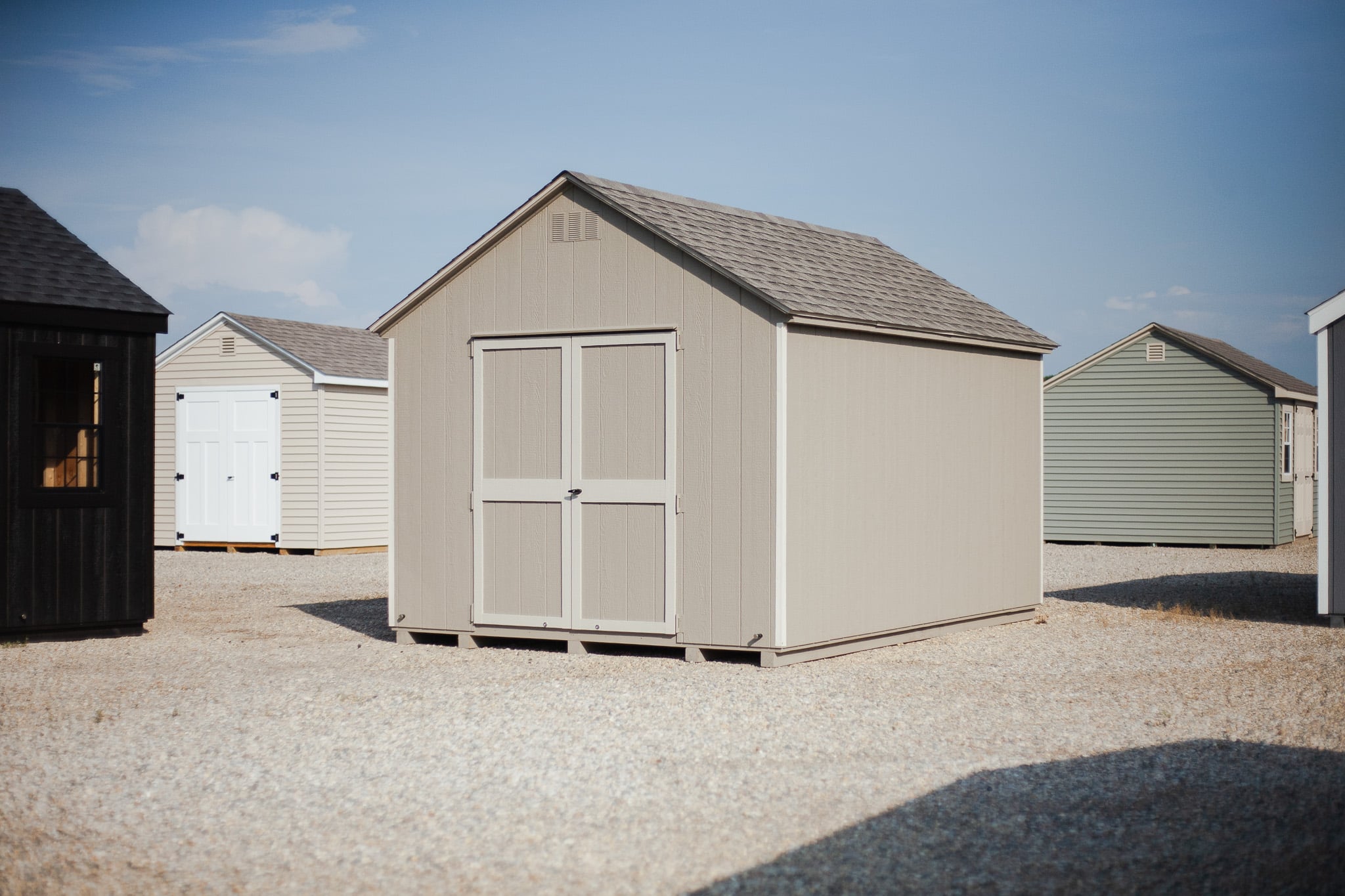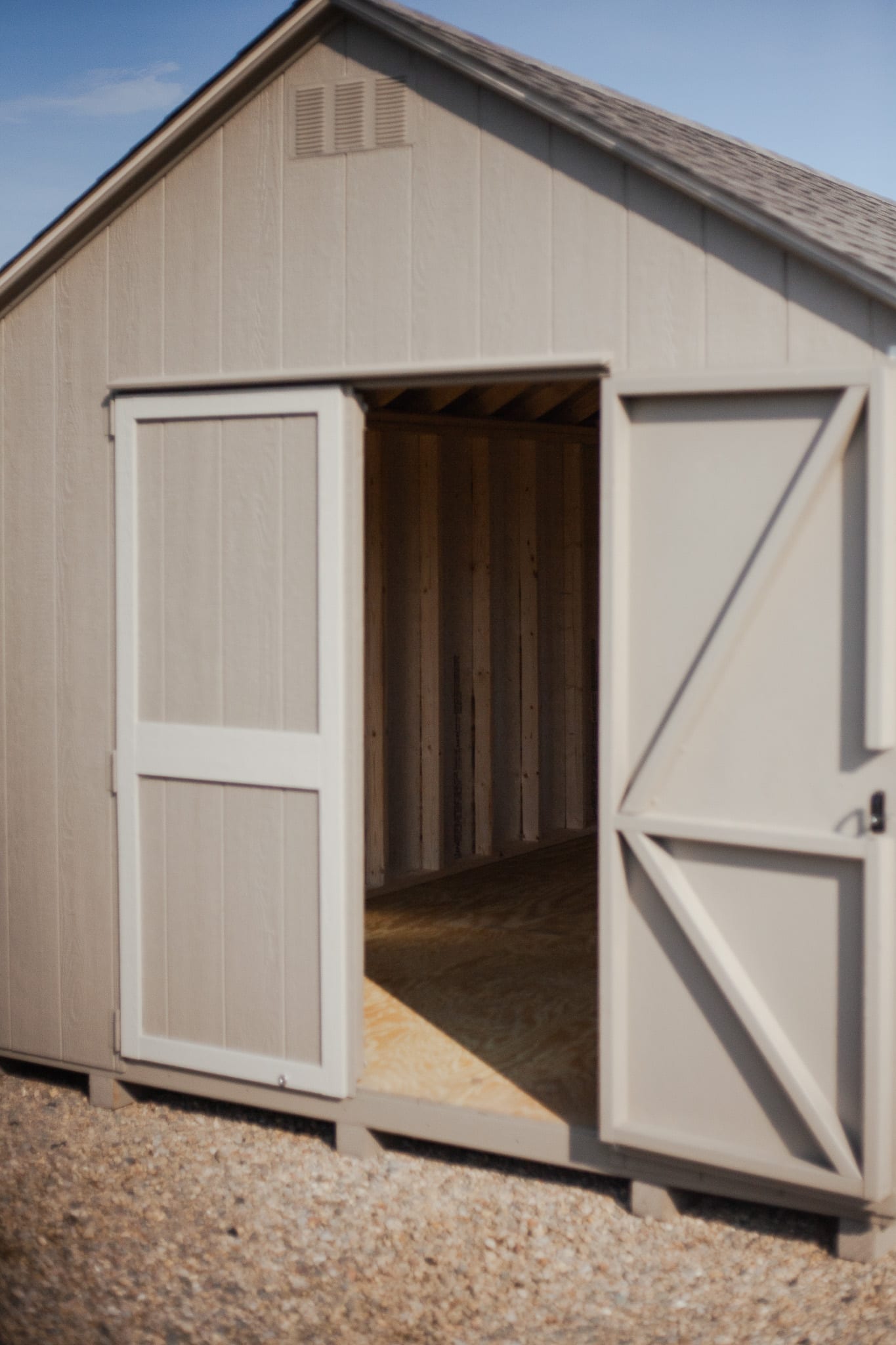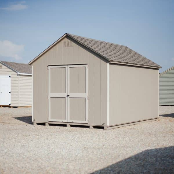 10×14 No Frill A-frame, Clay/Almond/Weatherwood, Magnet Door Catches.