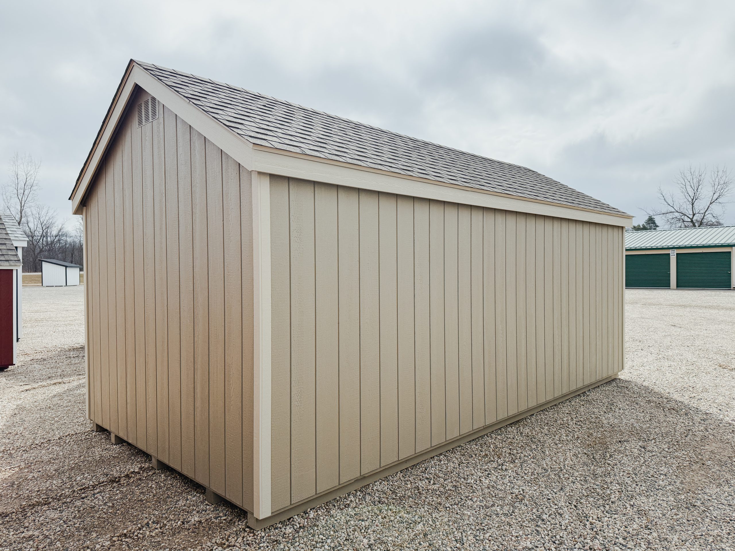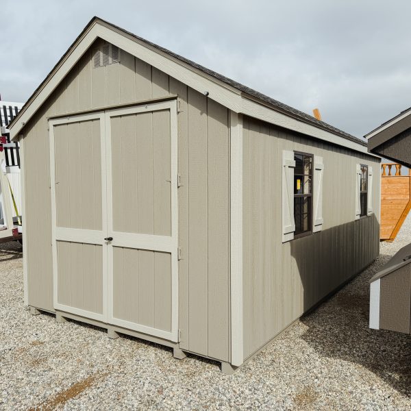 10×20 A-frame Classic, Clay/Almond/Weatherwood, 7′ high doors, door plate.