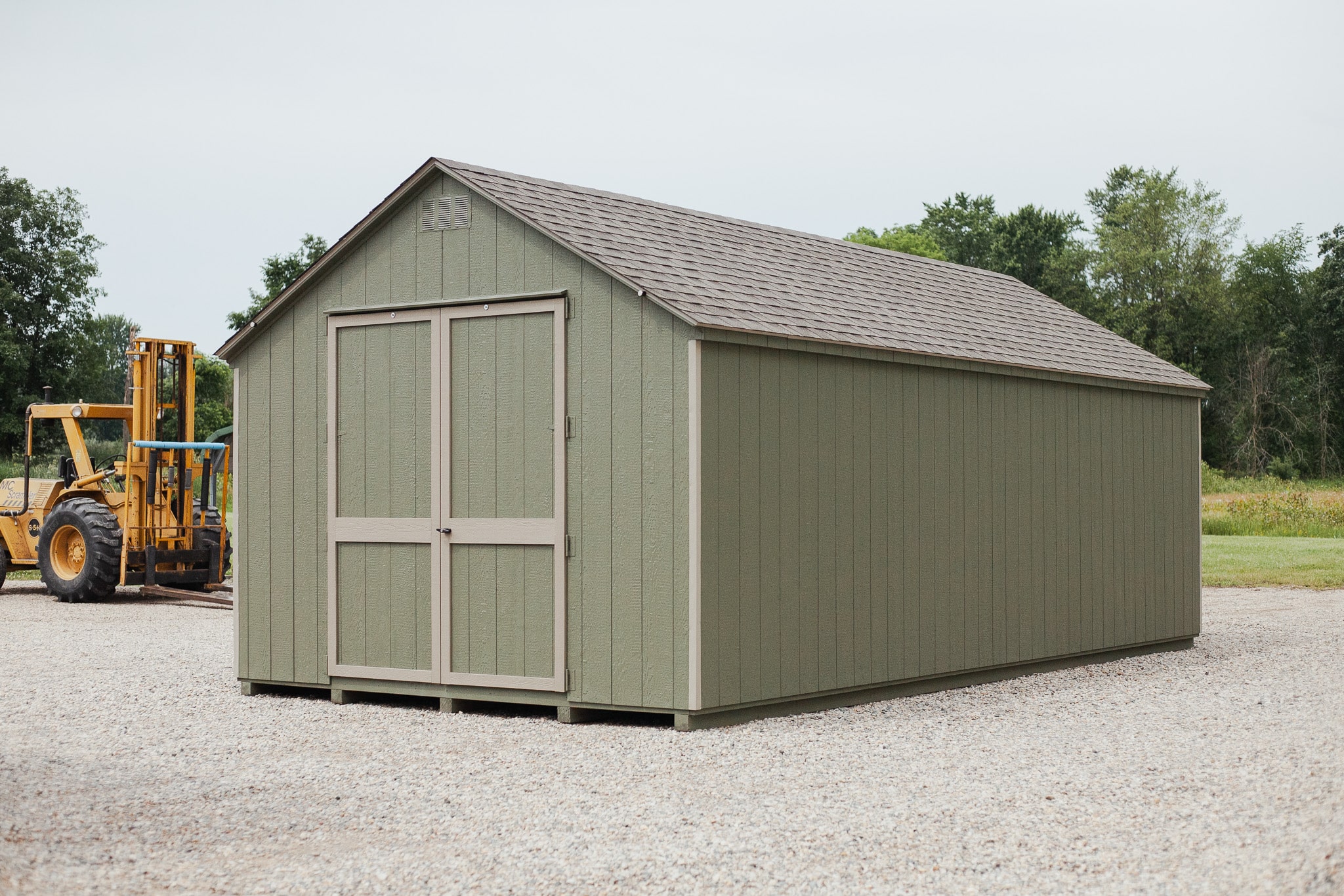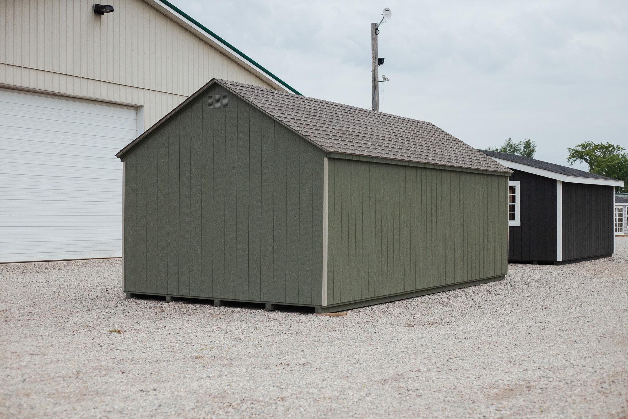 12×24 No Frill A-frame, Avocado/Clay/Weatherwood, Upgrade to 7′ tall dbl. Doors, Magnet Door Catches.