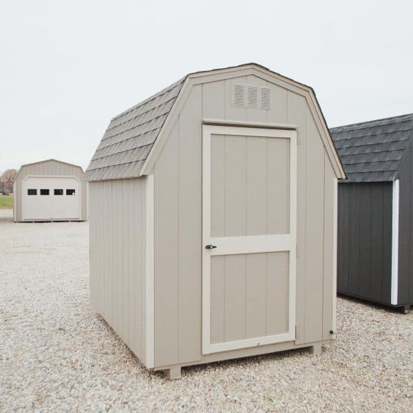 6×8 No Frill 5′ Mini Barn, Clay/Almond/Weatherwood, 3′ Single door w/ Door magnet.