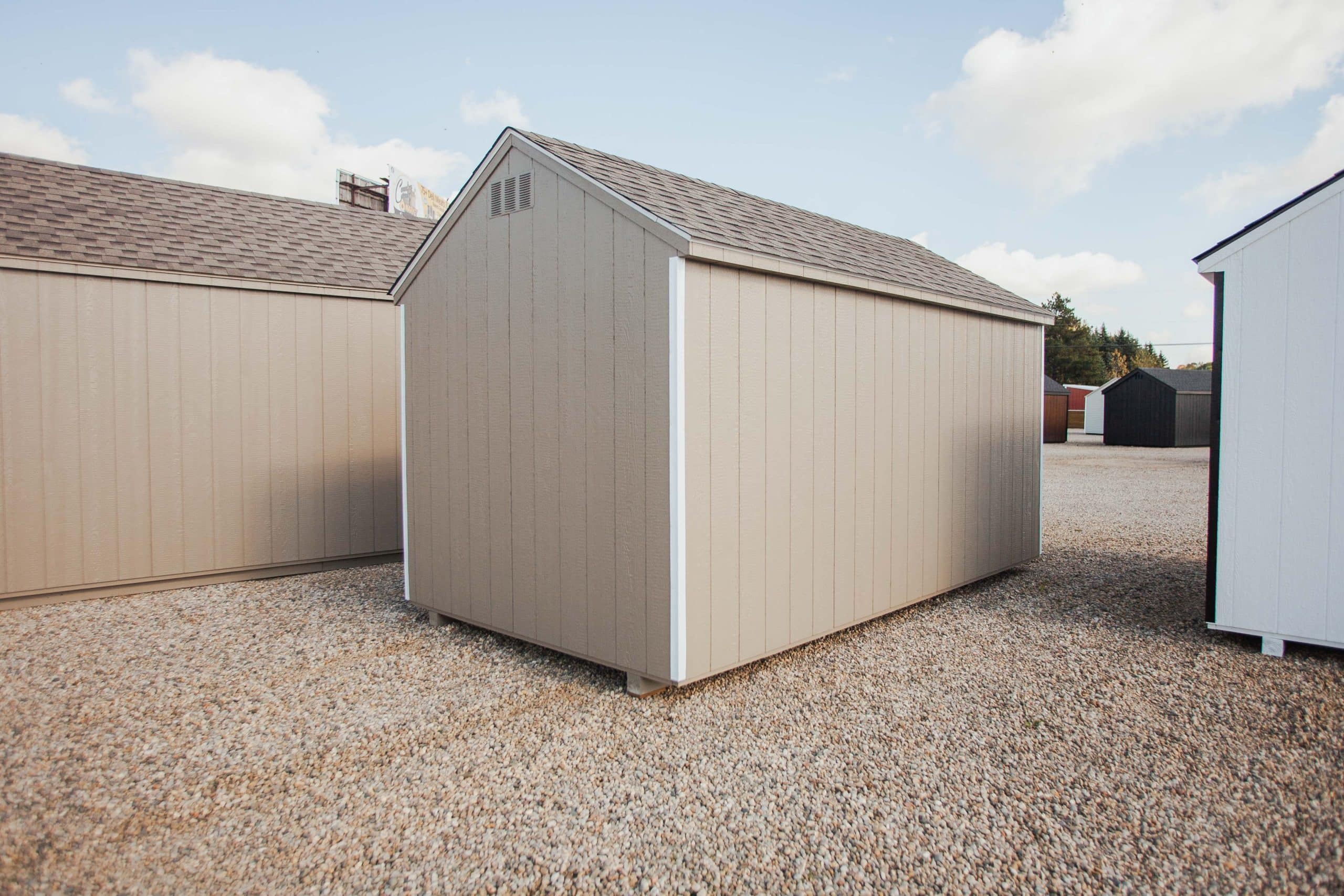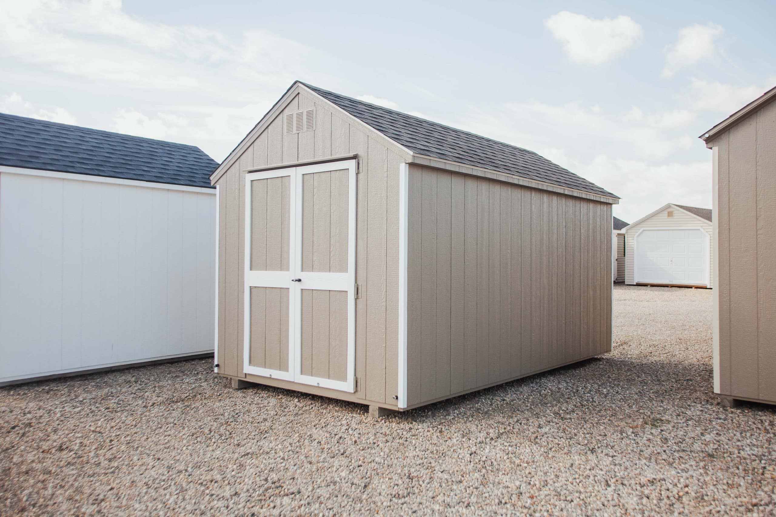 8×14 No Frill A-frame, Clay/White/Weatherwood, Door Magnets